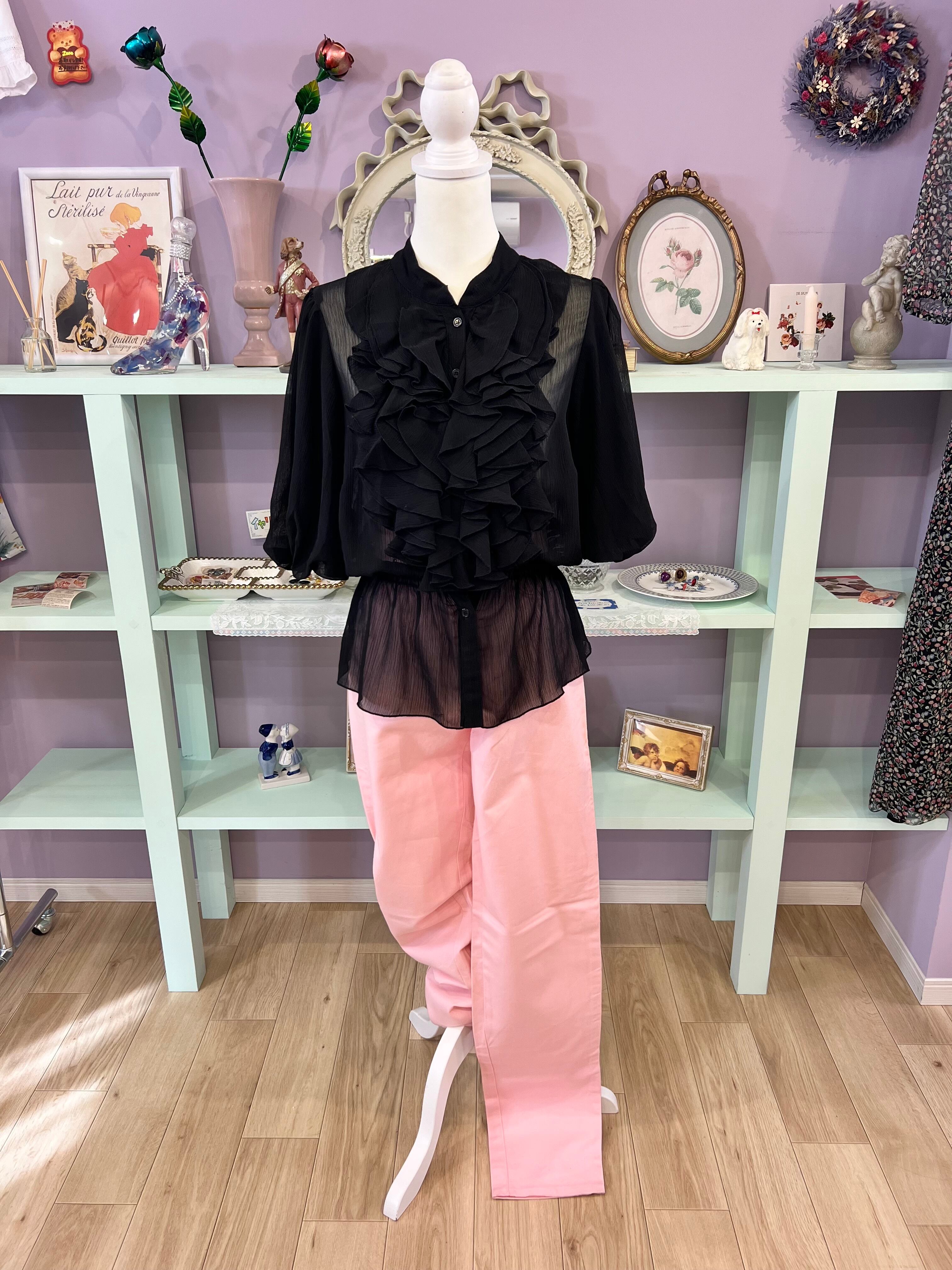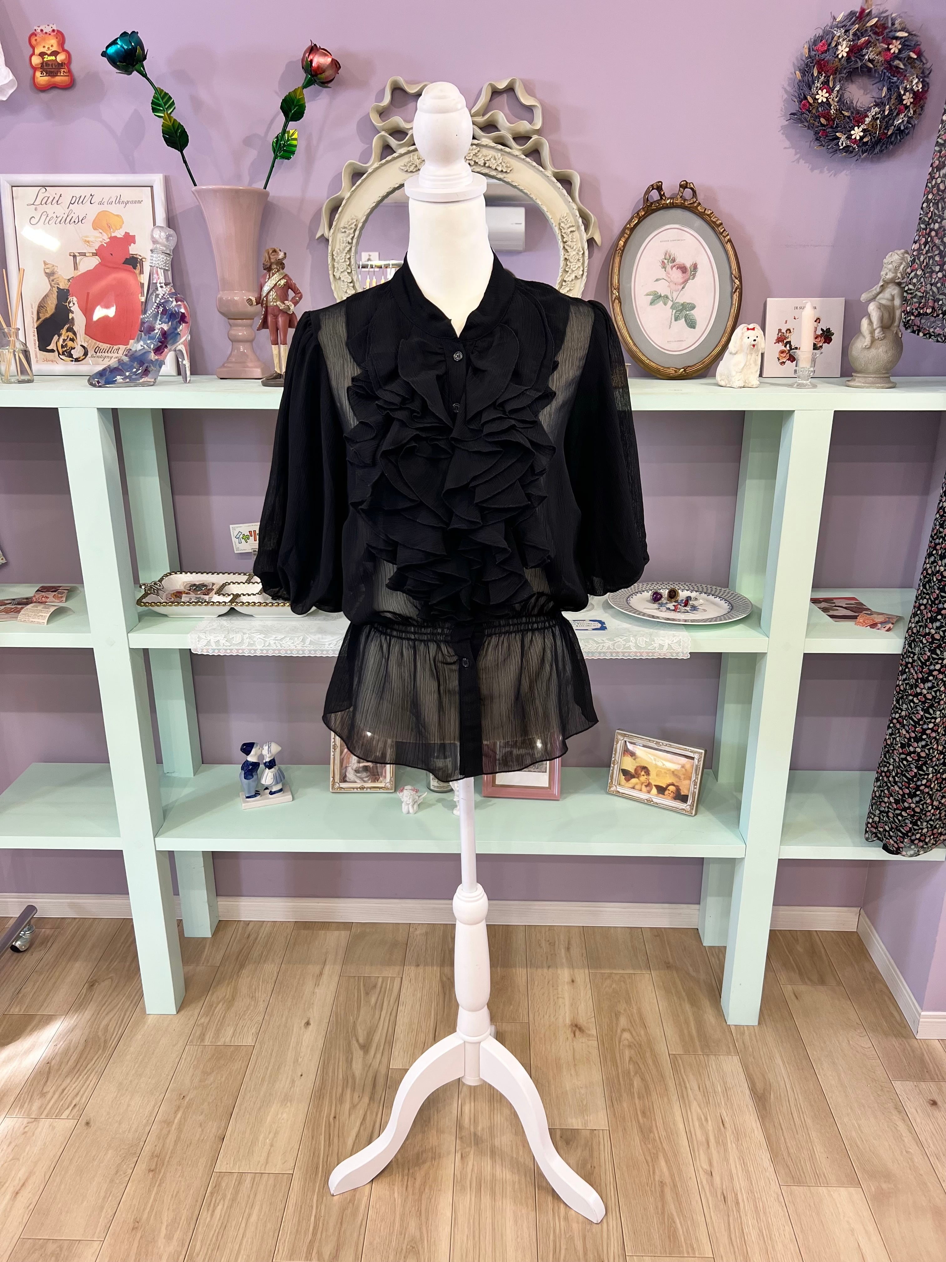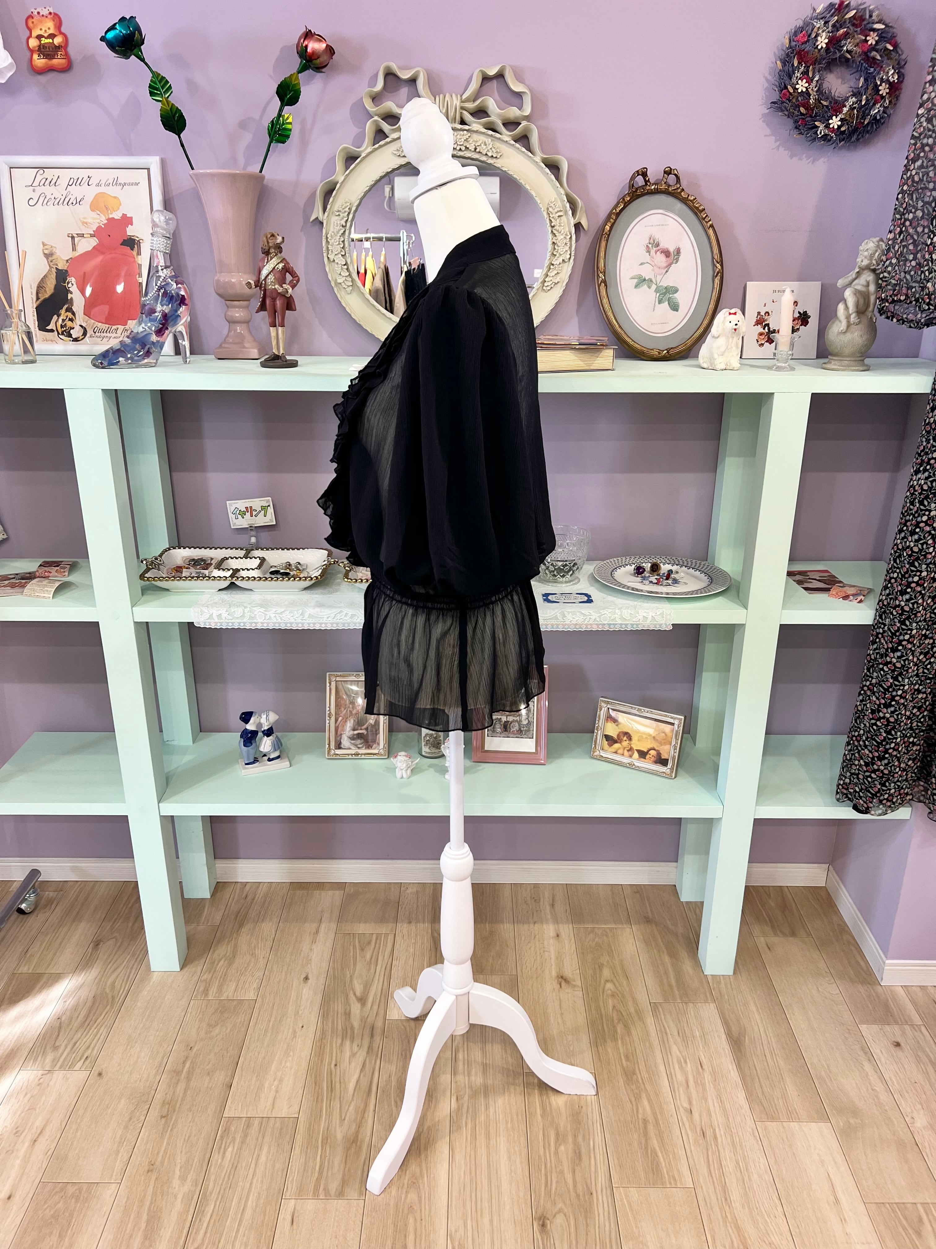 see-through frill blouse (black)