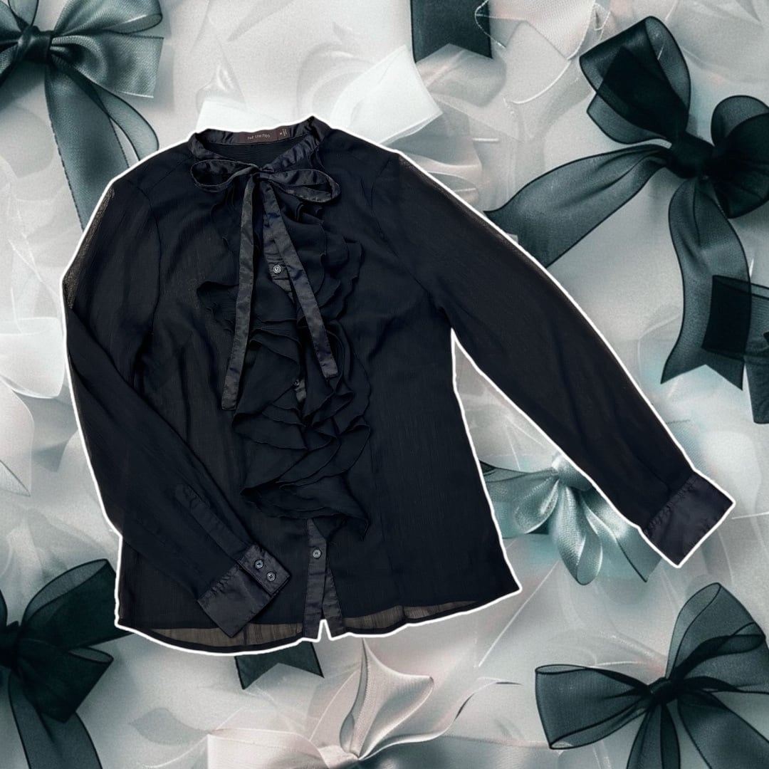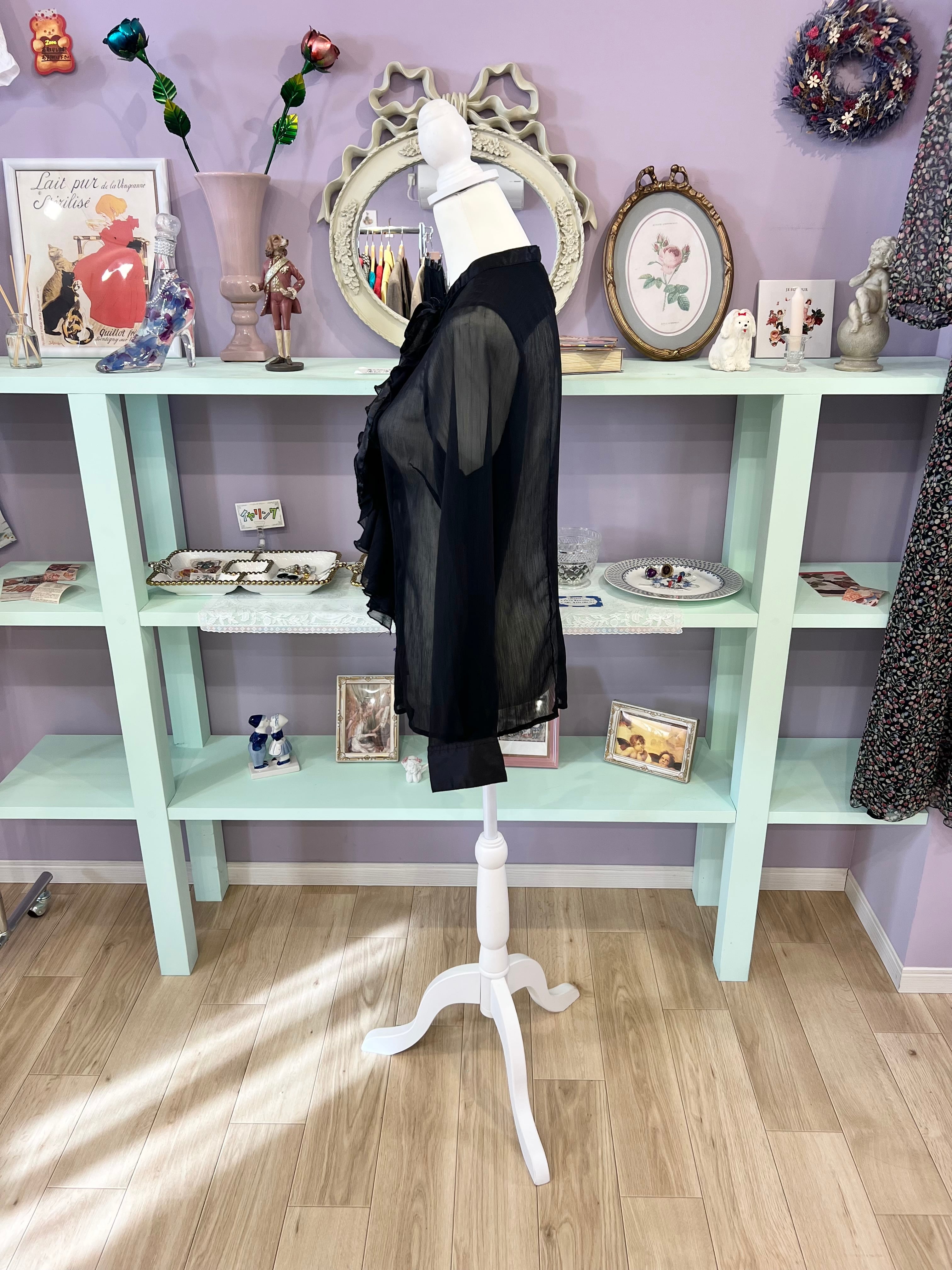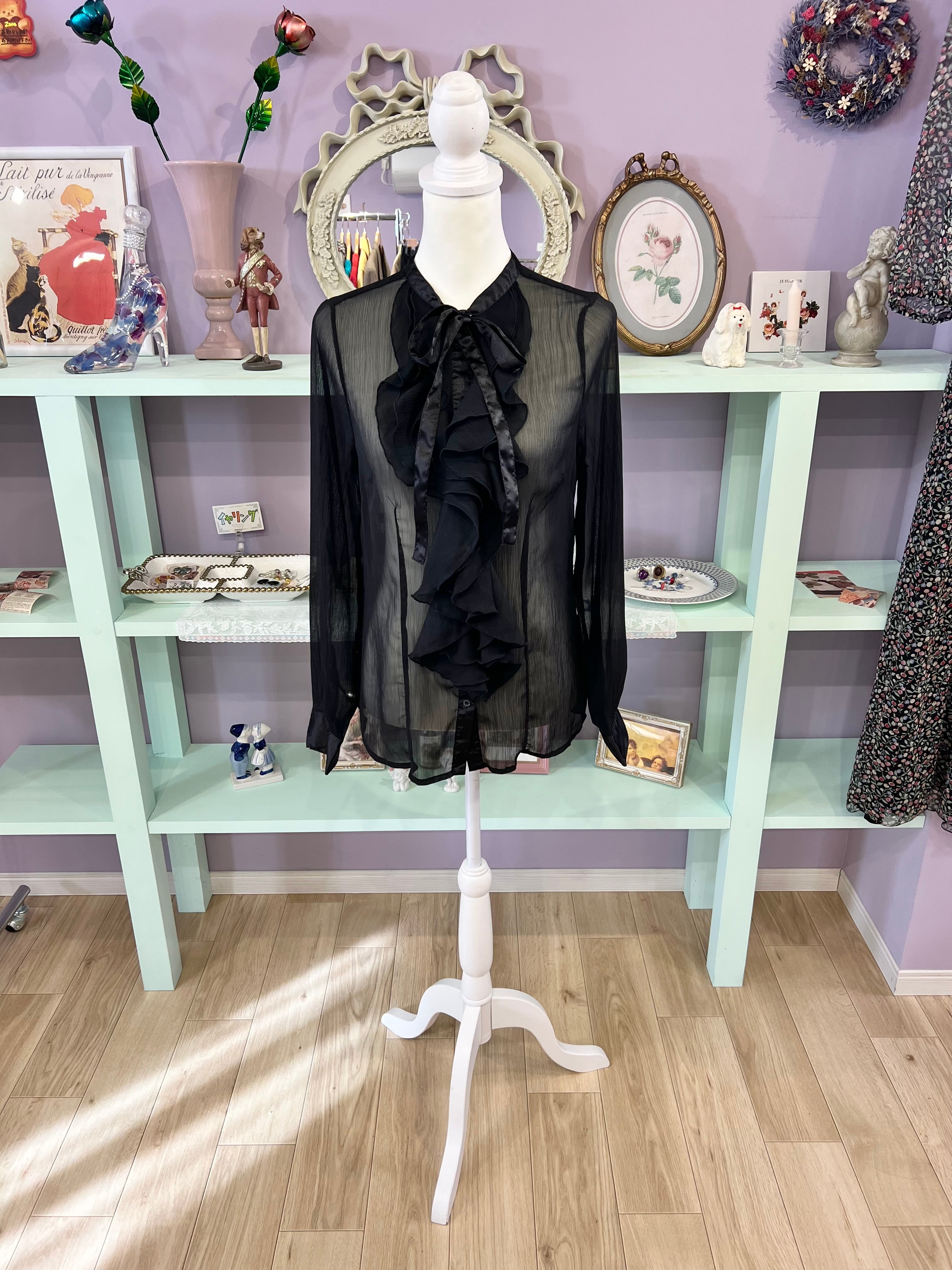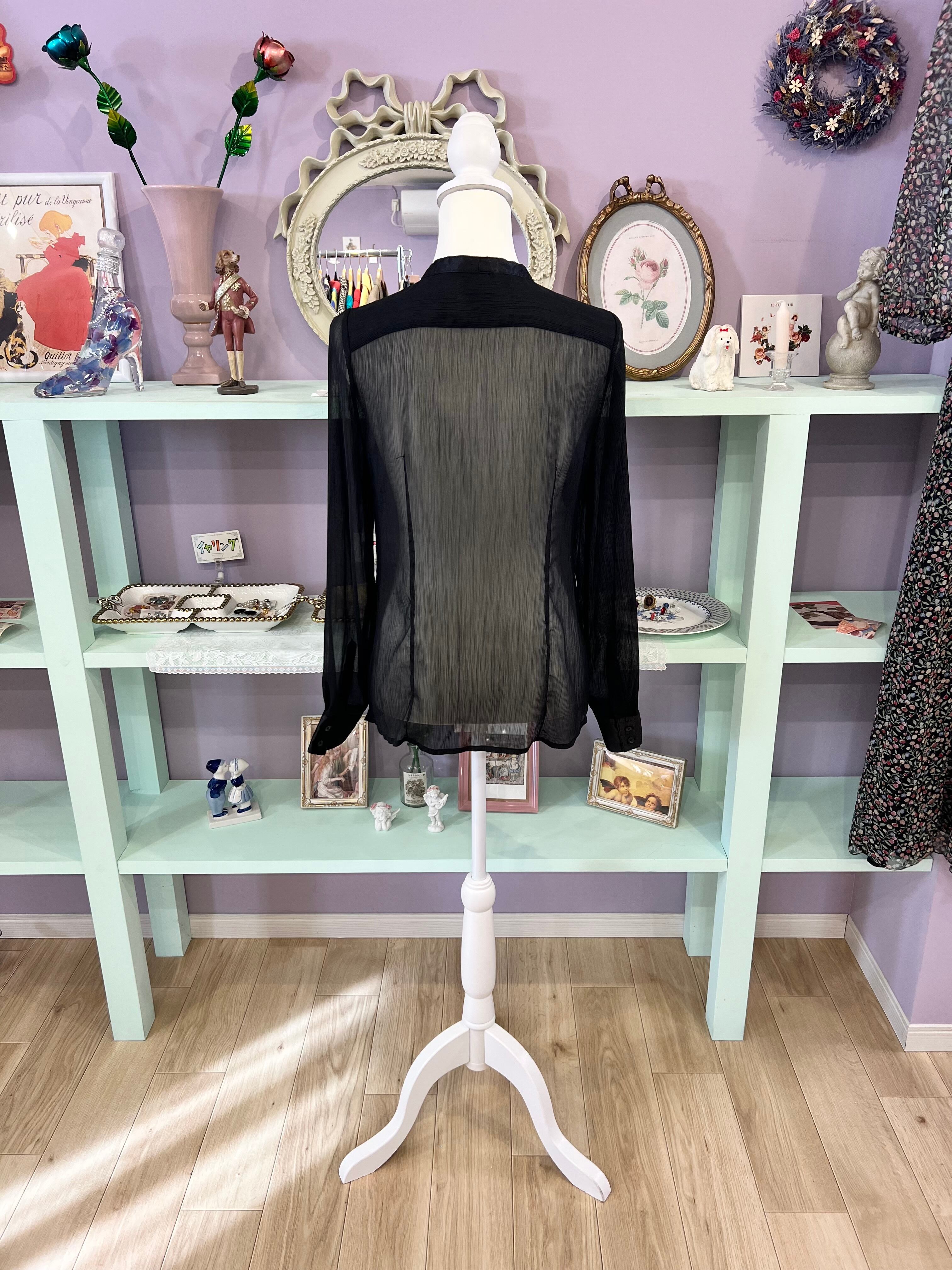 see-through ribbon blouse (black)