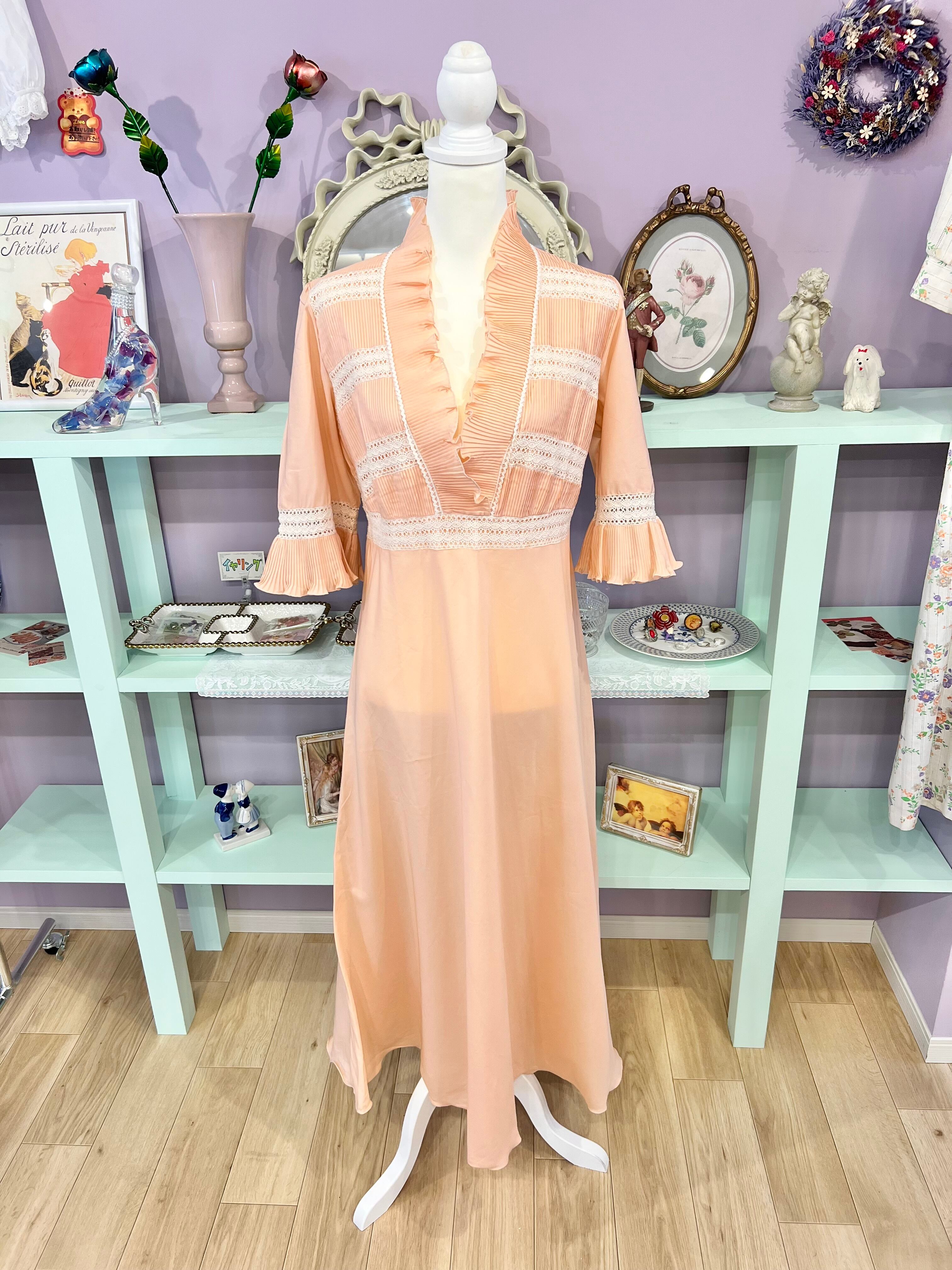frill pleats dress (salmon pink)